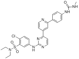2-chloro-N,N-diethyl-5-((4-(2-(4-(3-methylureido)phenyl)pyridin-4-yl)pyrimidin-2-yl)amino)benzenesulfonamide |
